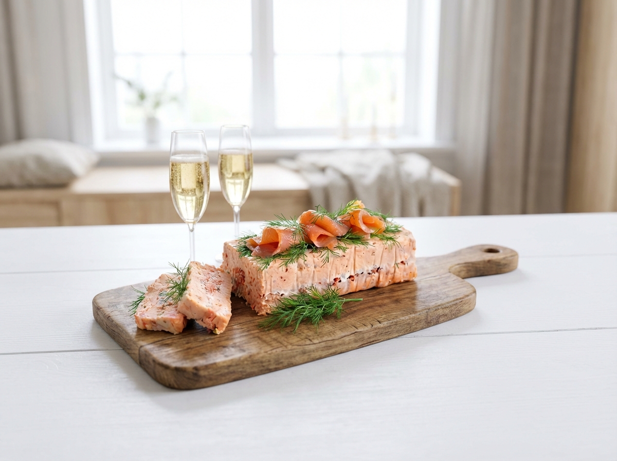 Lohiterriini on näyttävä ja herkullinen alkupala juhliin. Viipaloitava ja helppo valmistaa etukäteen.