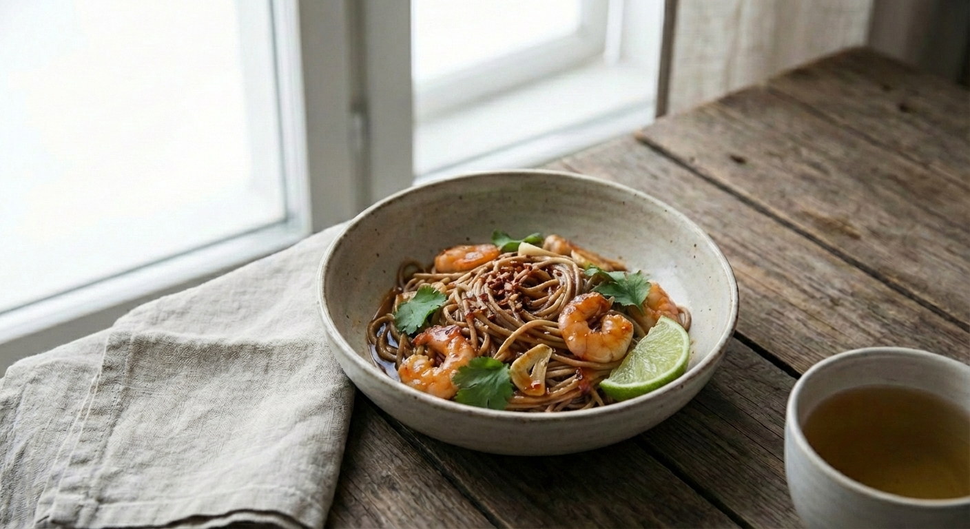 Katkarapunuudelit valmistuvat nopeasti ja sopivat helppoon arkiruokaan.